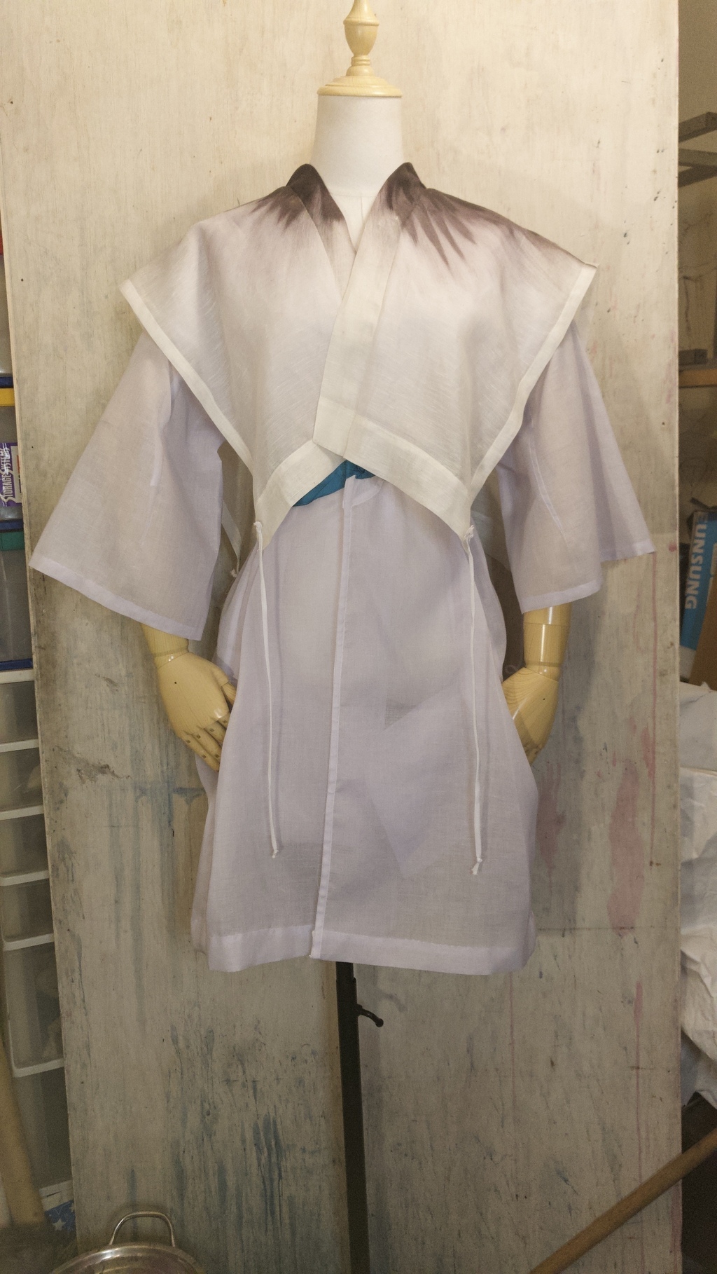 - **Material:** Organdí de algodón 100% con panel de Gaza en seda y lino.